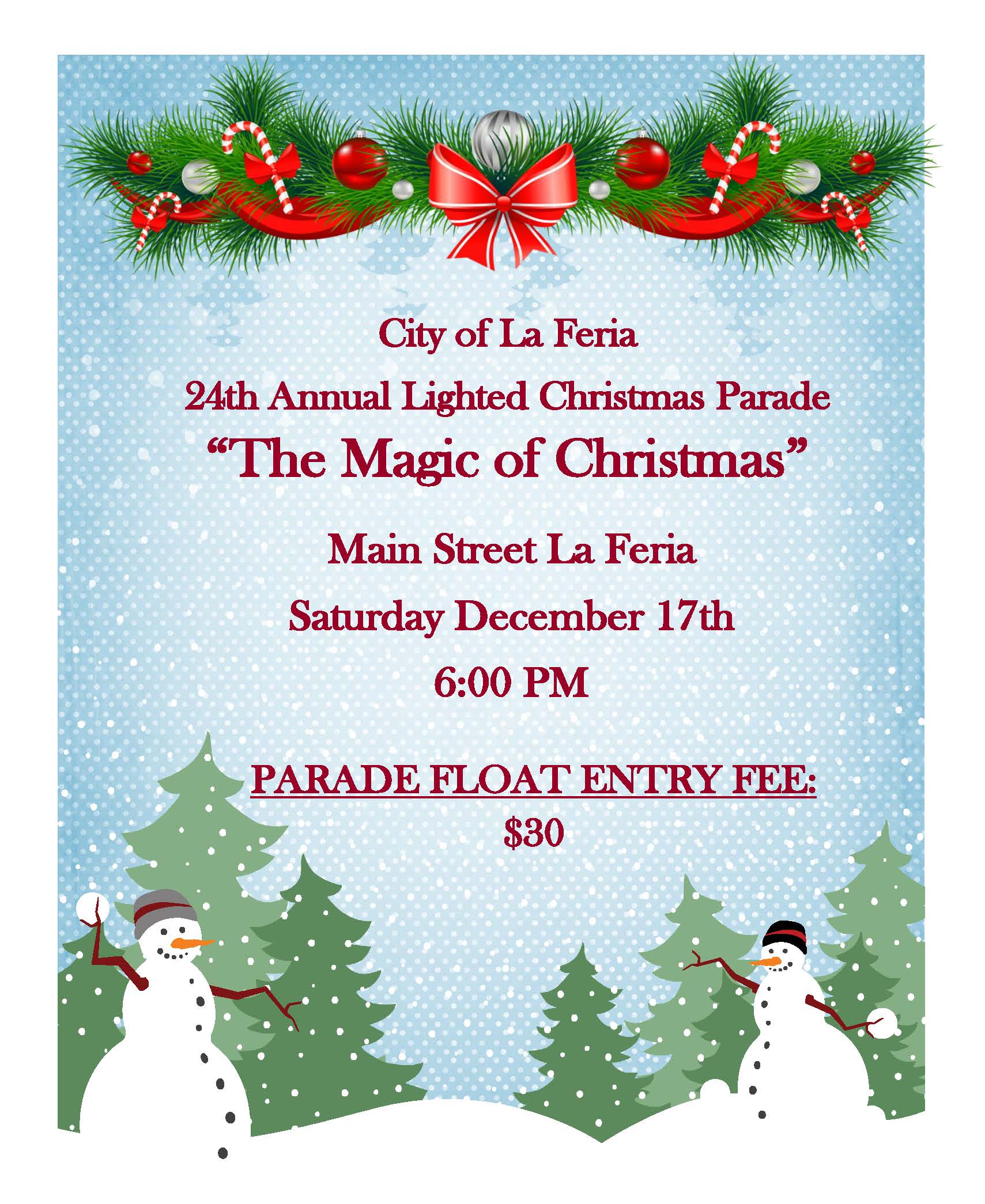17 * Lighted Christmas ParadeLighted Christmas Parade Time: 6:00 pm |
