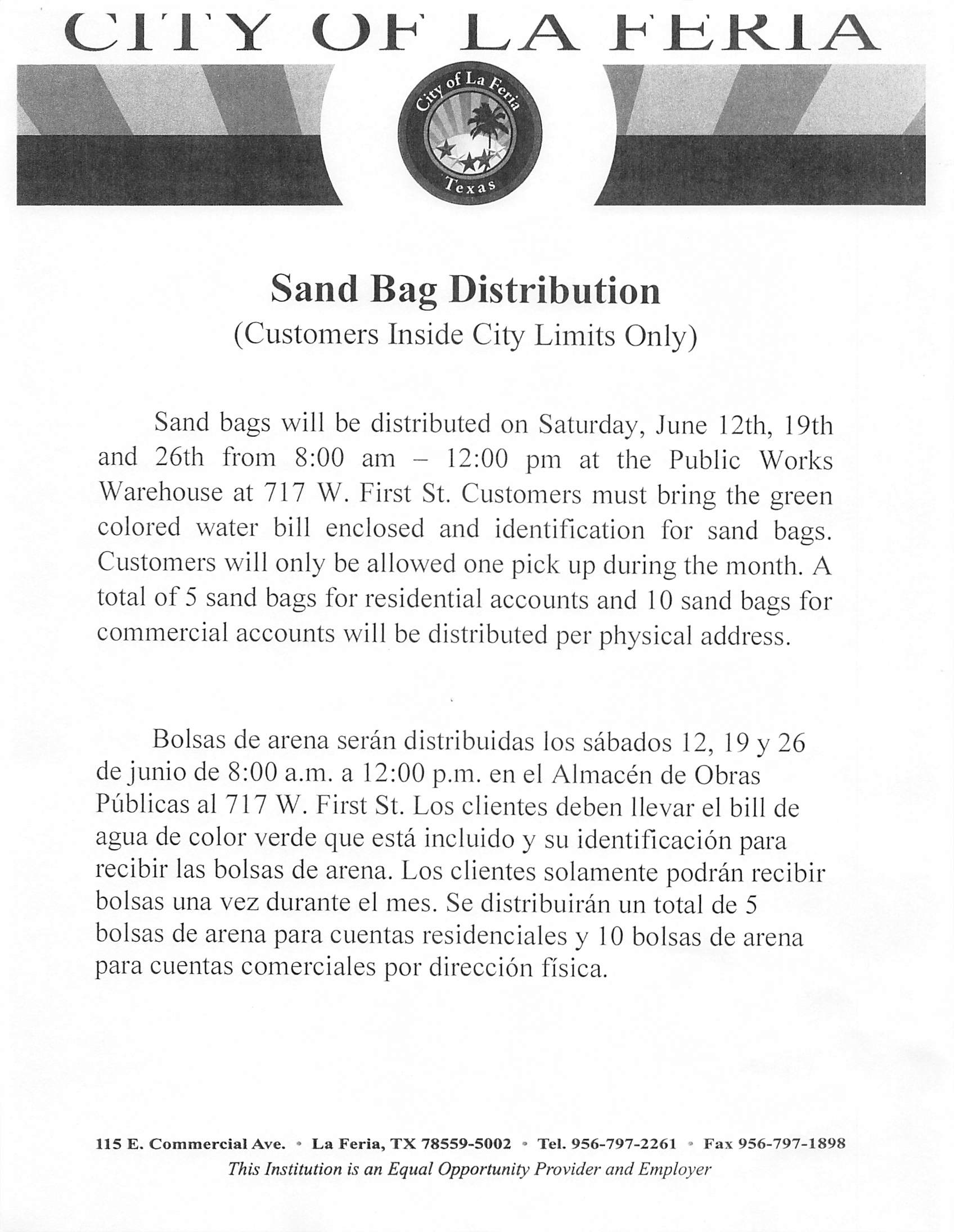 12 * Sand Bag DistributionSand Bag Distribution Time: 8:00 am |