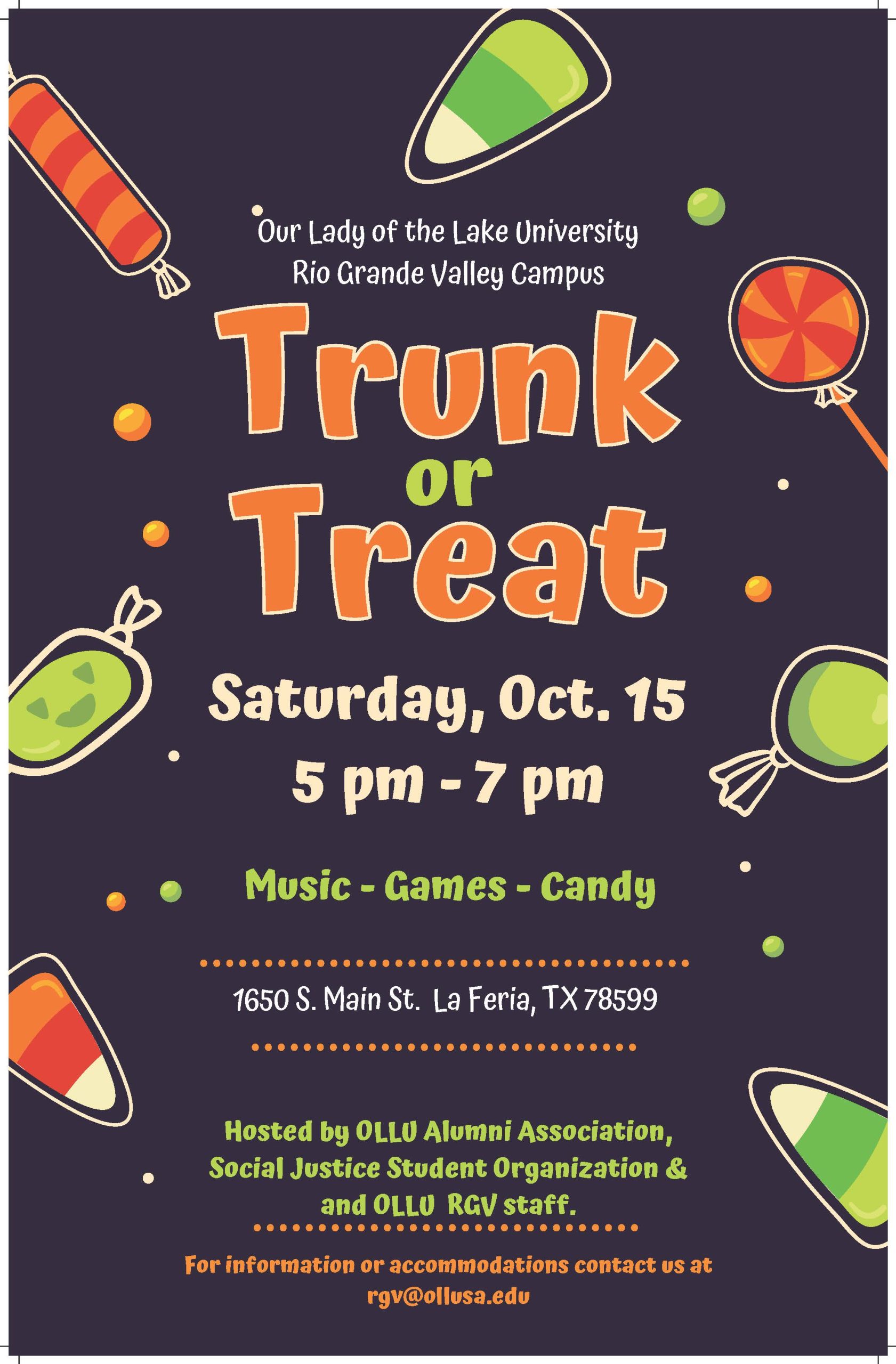 15 * OLLU Trunk or TreatOLLU Trunk or Treat Time: 5:00 pm |