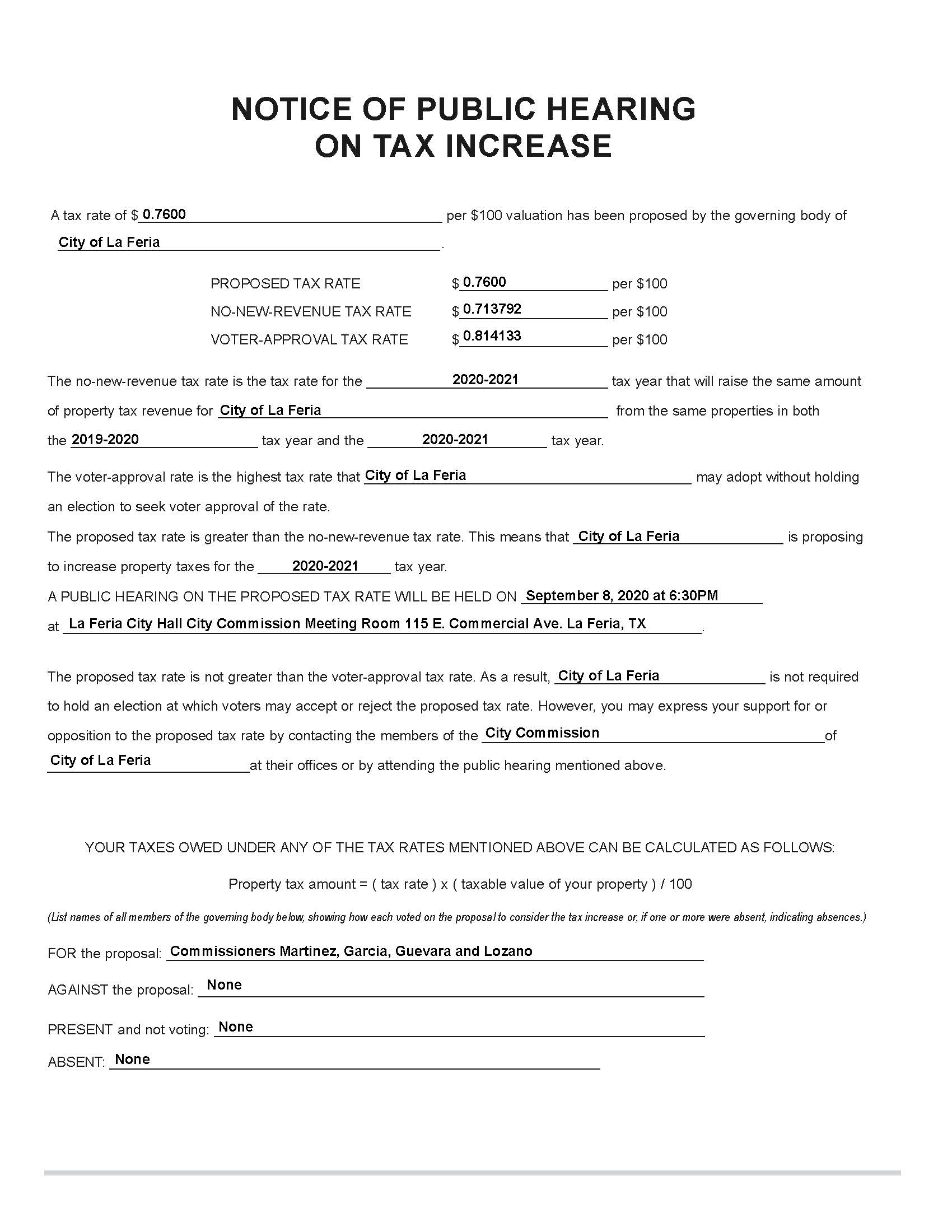8 * Tax Rate Public HearingTax Rate Public Hearing Time: 6:30 pm |